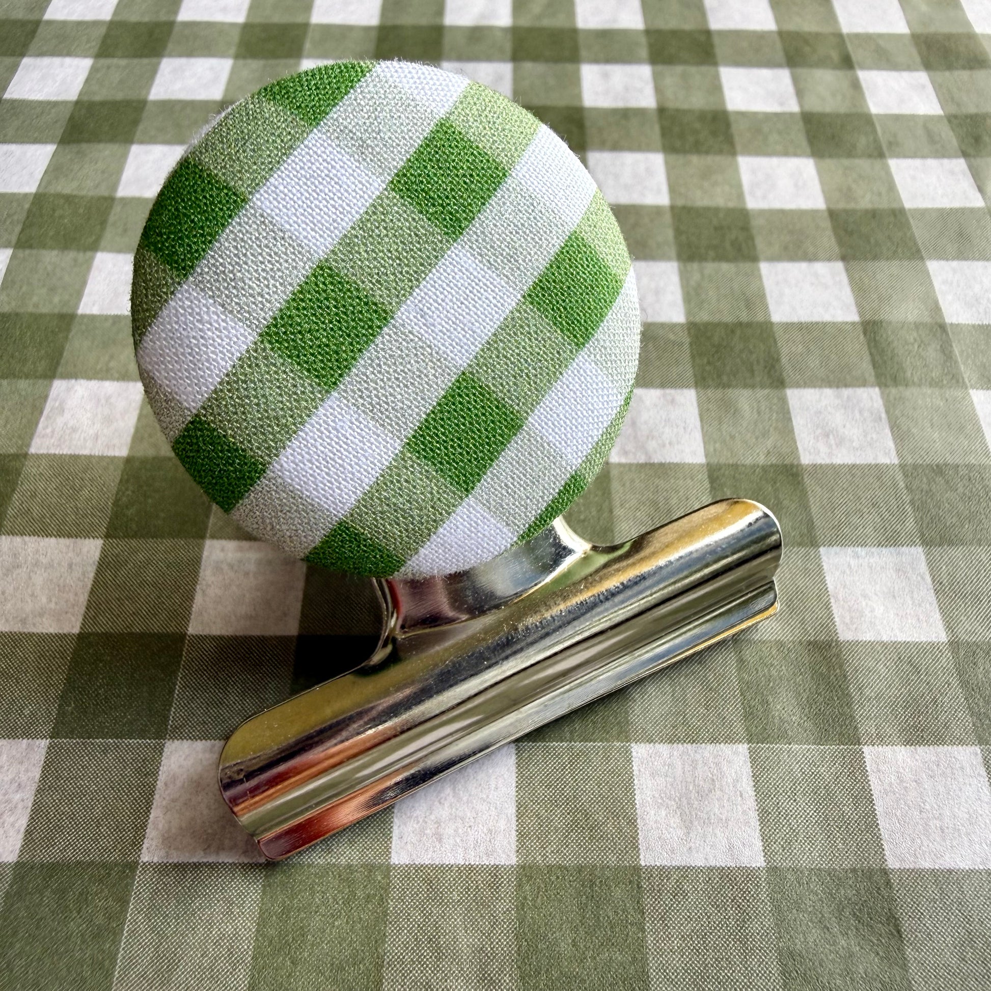 Green Gingham Bulldog Clip