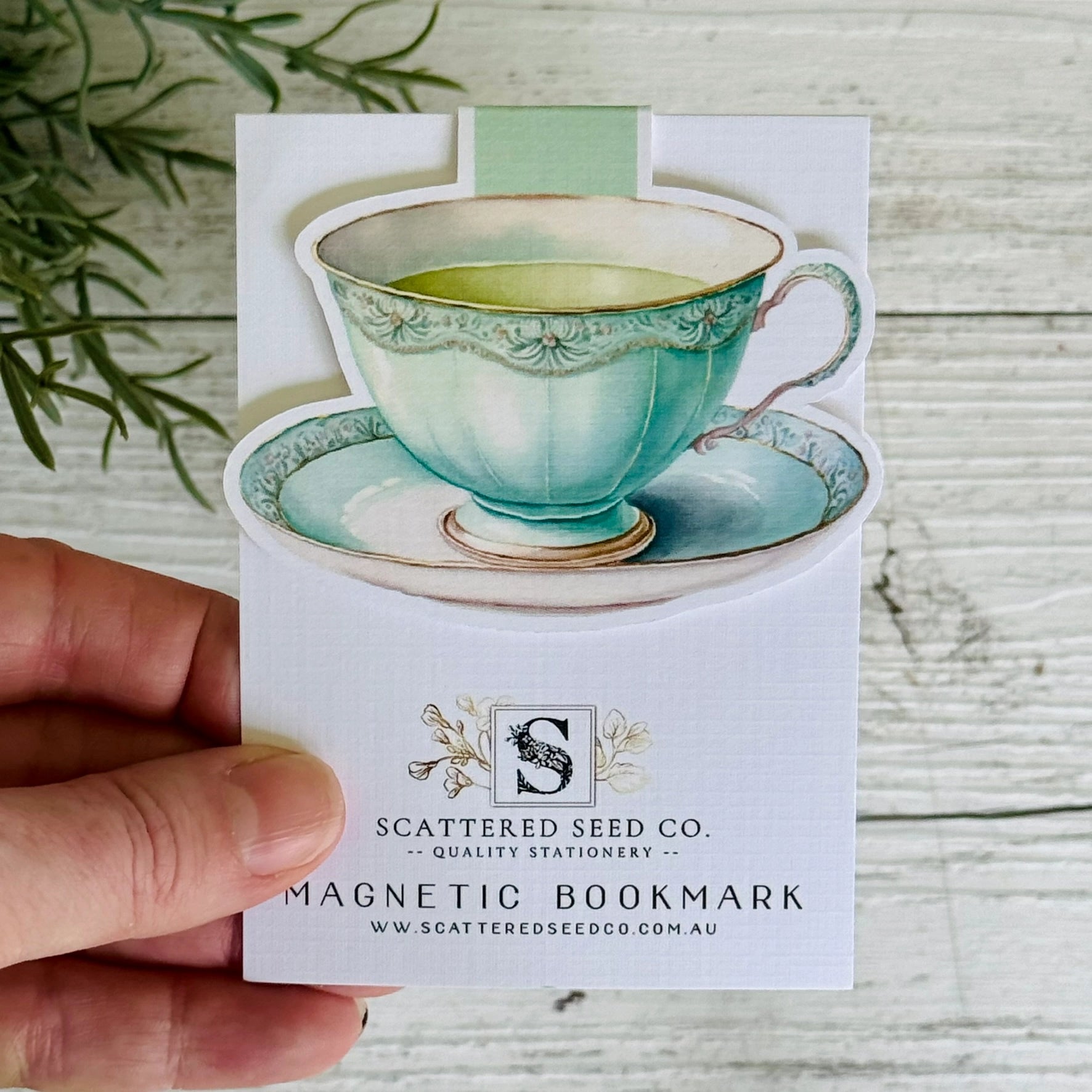 Mint Teacup Magnetic Bookmark